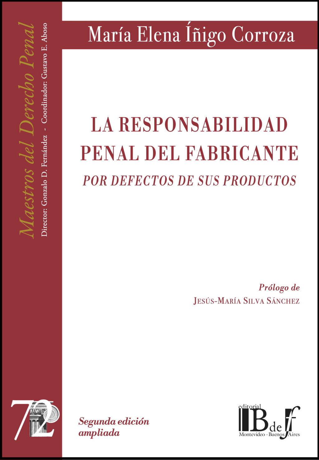 Iñigo Corroza, María Elena (profesora española): La responsabilidad penal del fabricante por defectos de sus productos. La nueva “sociedad de riesgo”. El Derecho penal en la sociedad actual. Modelo metodológico de estudio. La creación de riesgo como presupuesto de imputación objetiva de resultados. Riesgos cualitativamente relevantes. La responsabilidad penal por la puesta en el mercado de productos defectuosos. El tratamiento de la creación de riesgos como tipo penal diferenciado. Realización del riesgo en el resultado. Imputación del resultado a la conducta creadora de riesgos prohibidos. Análisis práctico de ciertos supuestos de actualidad sobres lesiones o muertes causadas por productos. Colección: Maestros del Derecho Penal Nº 72. 480 pp. 2026. ISBN 978-9915-684-59-8.
