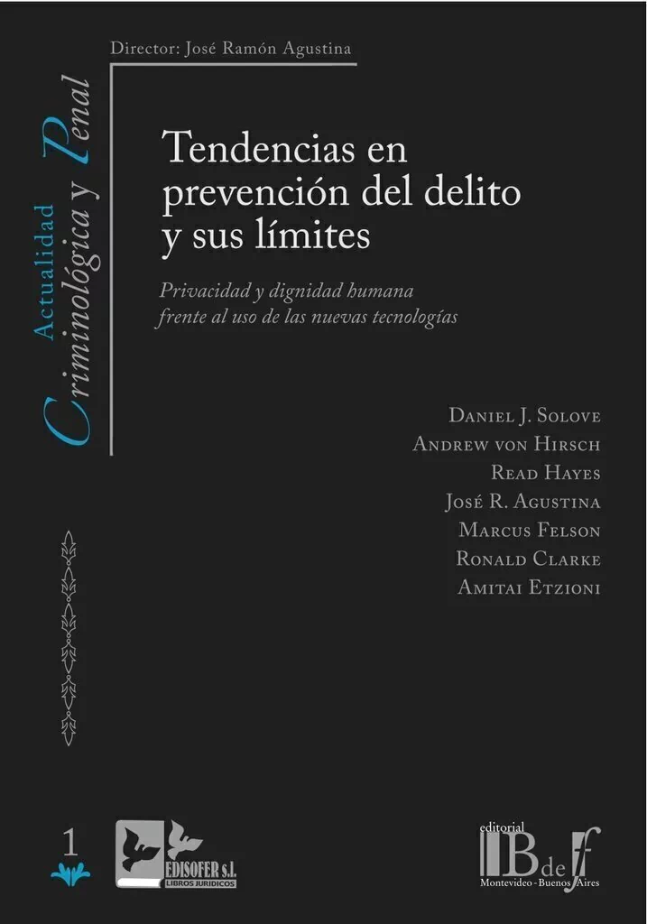 Solove, Daniel J. Von Hirsch, Andrew Hayes, Read Agustina, José R. Felson, Marcus Clarke, Ronald V. Etzioni, Amitai: Tendencias en prevención del delito y sus límites. Privacidad y dignidad humana frente al uso de las nuevas tecnologías. Privacidad, un concepto confuso. Cuestiones éticas en torno a la vigilancia en espacios públicos mediante sistemas de videovigilancia. Estrategias para detectar y prevenir conductas ilícitas en el lugar de trabajo. Prevención del delito en la empresa: límites ético-jurídicos en la implementación de video vigilancia. Cuestiones éticas en torno a la prevención del delito. Los límites a la privacidad. Colección: Actualidad Criminológica y Penal Nº 1. 2010. 248 pp. ISBN 978-9974-676-53-4.